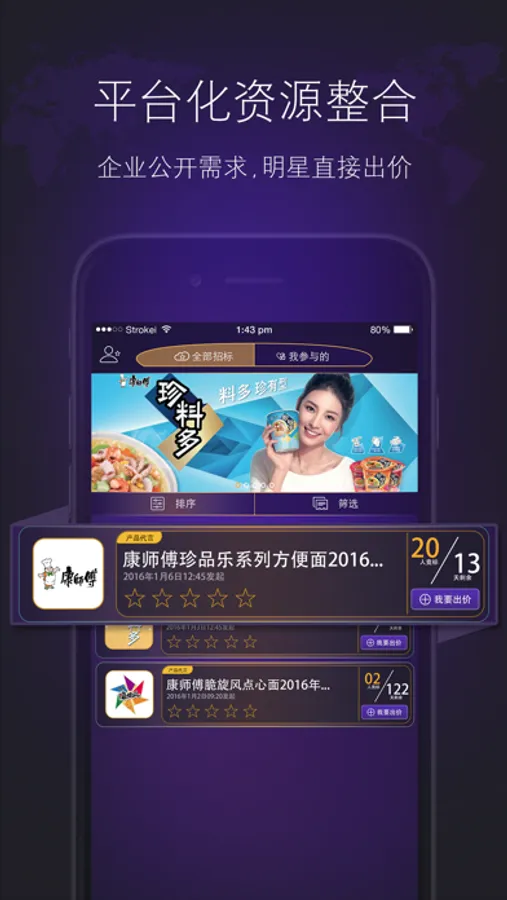 『整合需求与资源,提供一站式服务』为买卖双方提供需求发布、明星出价、订单管理等一站式服务。