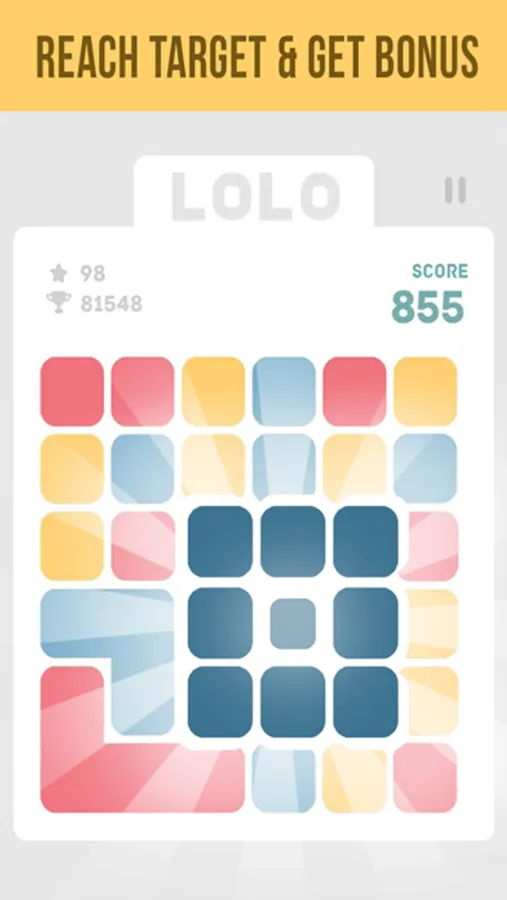 LOLO is a highly addictive block puzzle game. Gather same color shapes into a single cell. Gathering more blocks into a single cell unlocks dark blue which helps you clear the board and keep going.