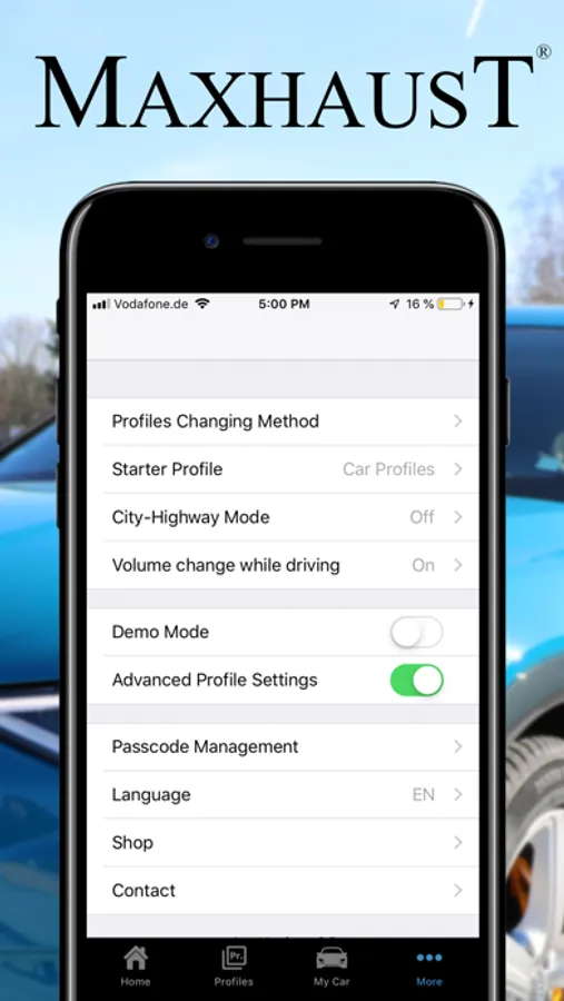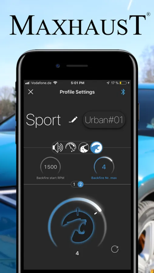 • Automatic detection of the External Sound Modules such as Maserati, Audi, Porsche or Maxhaust Sound Module