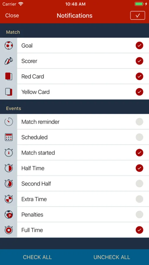 Follow a single event or all your favorite team matches with the fastest notification alert in the store!!!