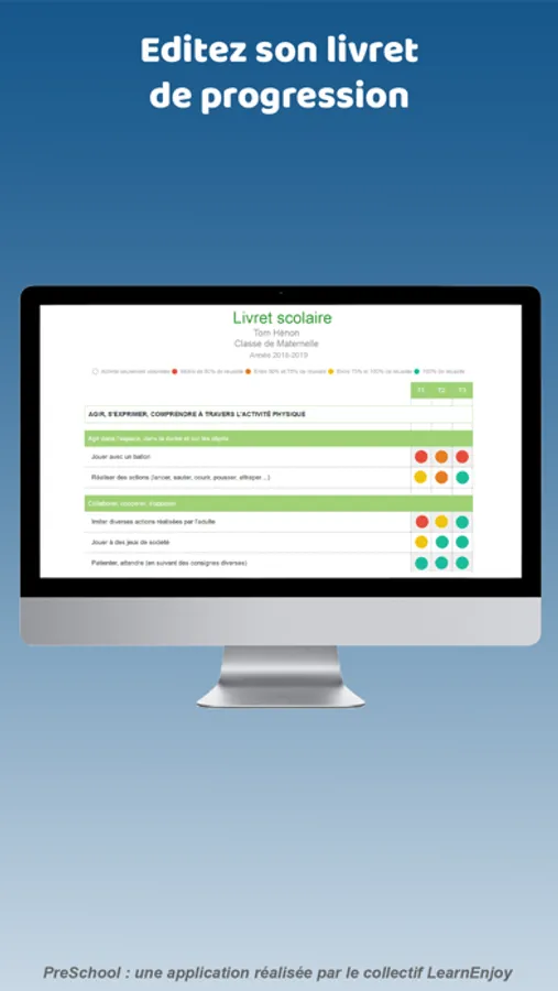 PreSchool est une application conçue pour accompagner en douceur et avec rigueur le développement cognitif, social et scolaire des élèves de niveau maternelle.