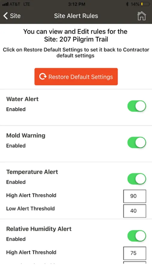 • Receive water alarm alerts to notify you and the homeowner of any bulk water so immediate action can be taken.