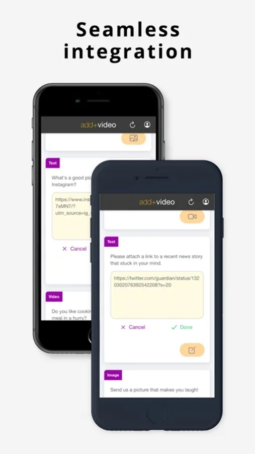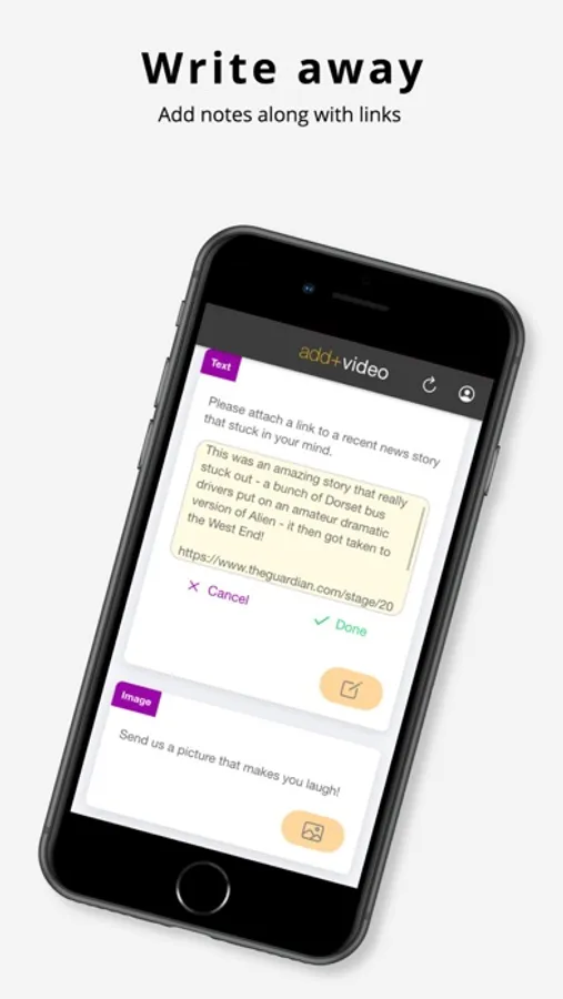 Add Video is the app where you can add your voice to market research surveys. When invited by our partner research agencies, you can submit video, image or text responses to their questions, and influence brands and charities with your insights.