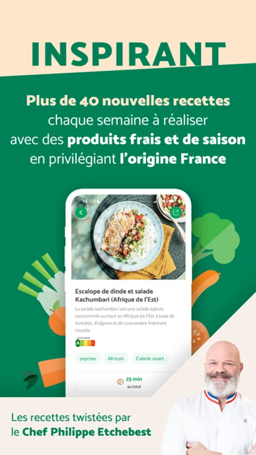 - Chaque semaine, découvrez parmi les 40 recettes habituellement proposées, 2 recettes revisitées par le Chef Philippe Etchebest, agrémentées d'un secret de cuisine qui en fait toute l'originalité.