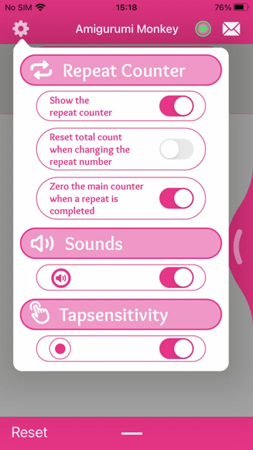 Simply tap almost anywhere on the screen and track your rows. Need to repeat the same count a number of times? This app let's you do exactly that!