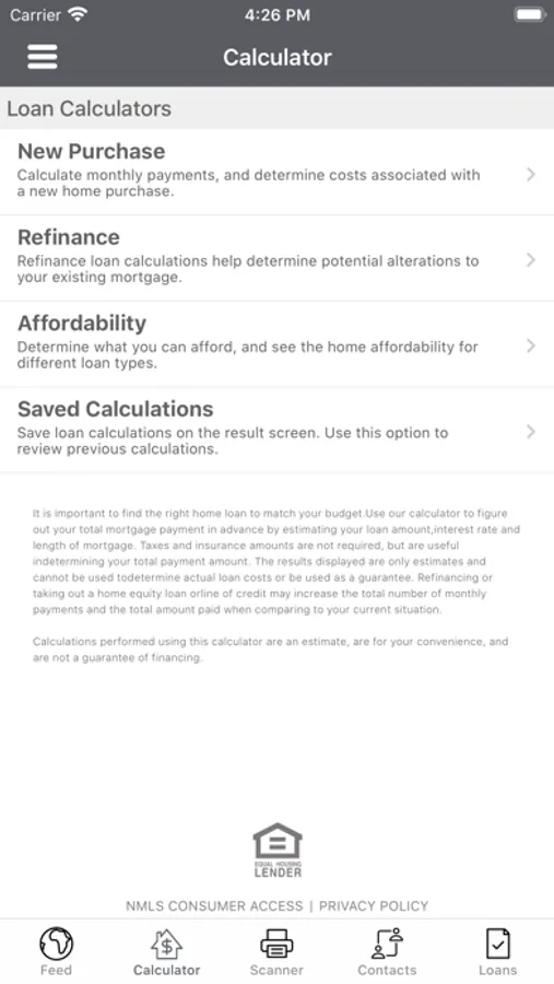 - Mortgage Calculator* – compare loan programs to help you determine which option is best for you, calculate savings or cost of refinancing your mortgage