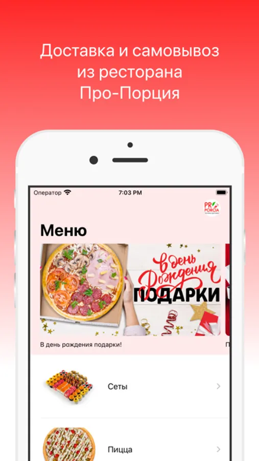 Мобильное приложение ресторана “Про-порция” позволяет быстро и просто оформить заказ.