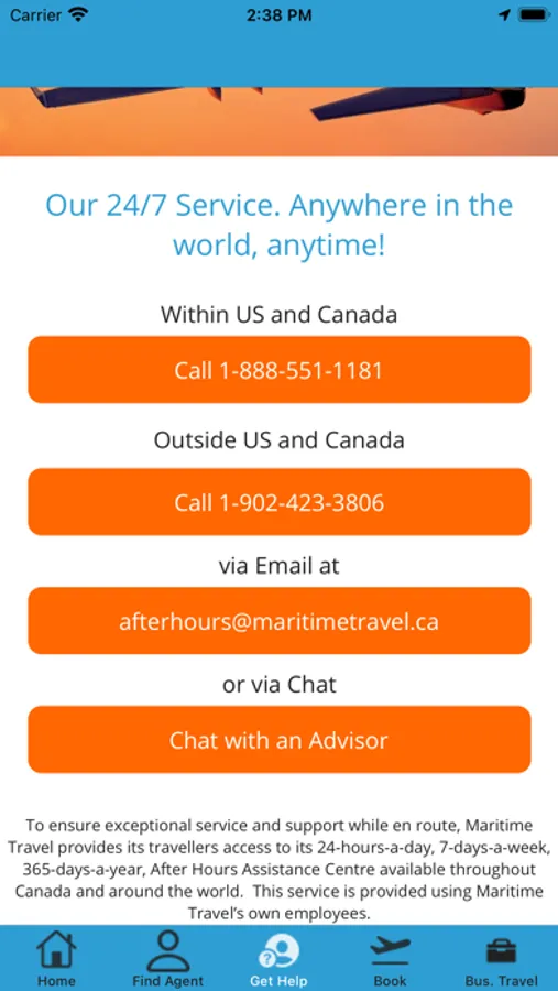 • Emergency Travel Service - all channels of contacting our Emergency Travel Service are available within the app itself, including phone numbers based on location and Email. So when you need to contact someone right away, you have one spot to go to.