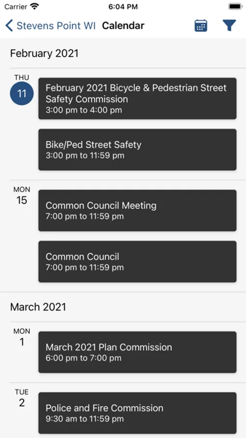 • Calendar – See what’s going on in the city and sign up for event notifications and changes.