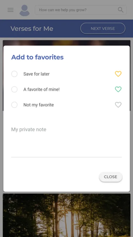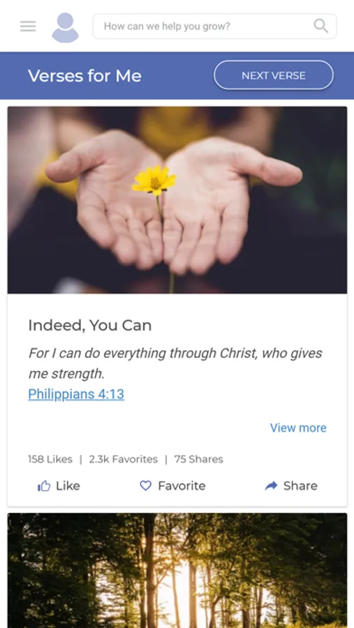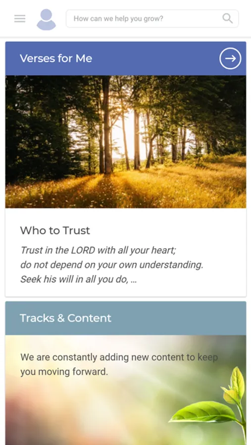 New redesigned interface with updated Home Page quickly gets you to all the main sections within the app: Verses for Me, Tracks & Content, Inbox, Favorites and Calendar.
