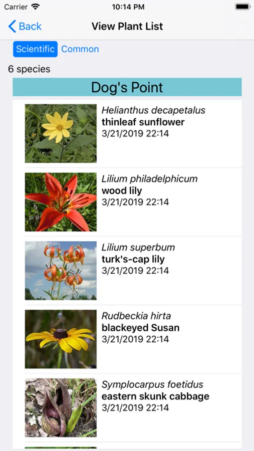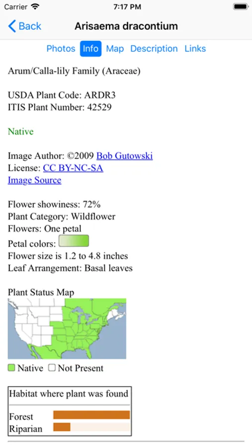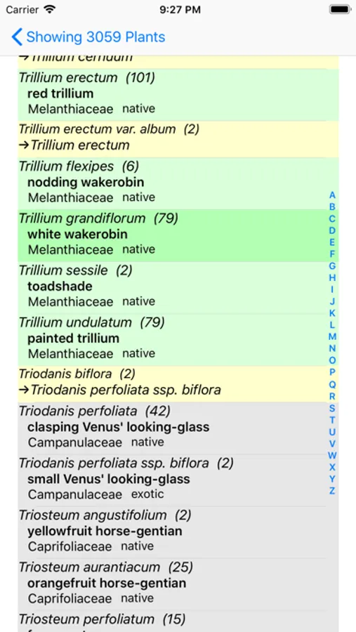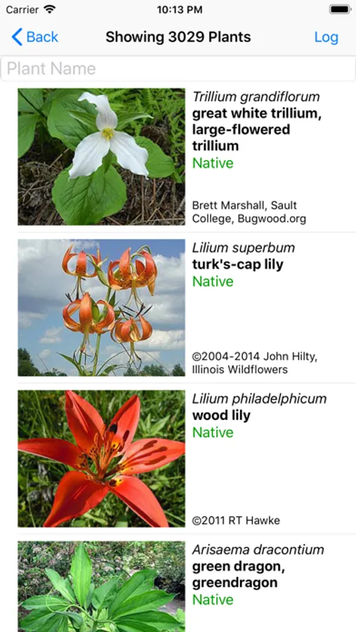 The App includes 3,542 species of plants found in New York. Overall, 1,641 are "Wildflowers", 315 are shrubs, 227 are broadleaf trees, 42 are conifers, 70 are vines, 556 are grass-like, 103 are fern-like, 370 are moss-like, 56 are seaweed and 306 are lichen.