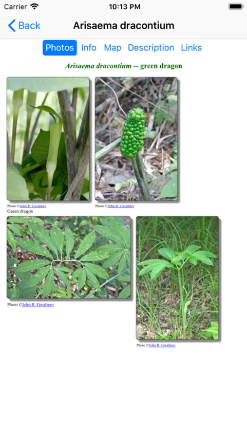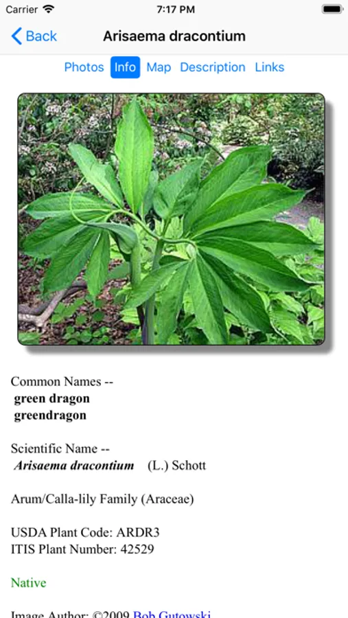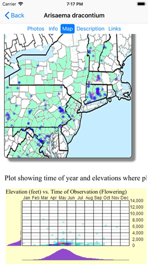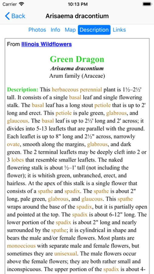 This App, which operates without an internet connection, helps find and identify plants. When you give the App information about a plant, such as its location, flower color and the time of year, the App will quickly show you which plants match your selections.