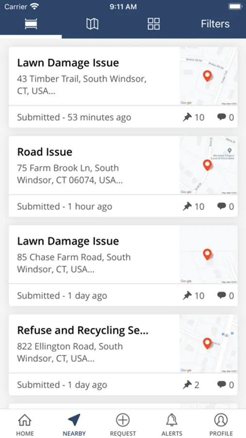 The application allows the public to submit service requests and to receive updates as the town departments resolve them. Additionally, links are provide to aid our citizens to access information requested by town department routinely. The town departments will continue to update information and look for ways to improve communication with our citizens and businesses.