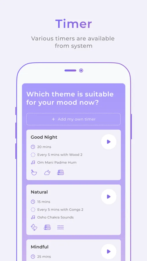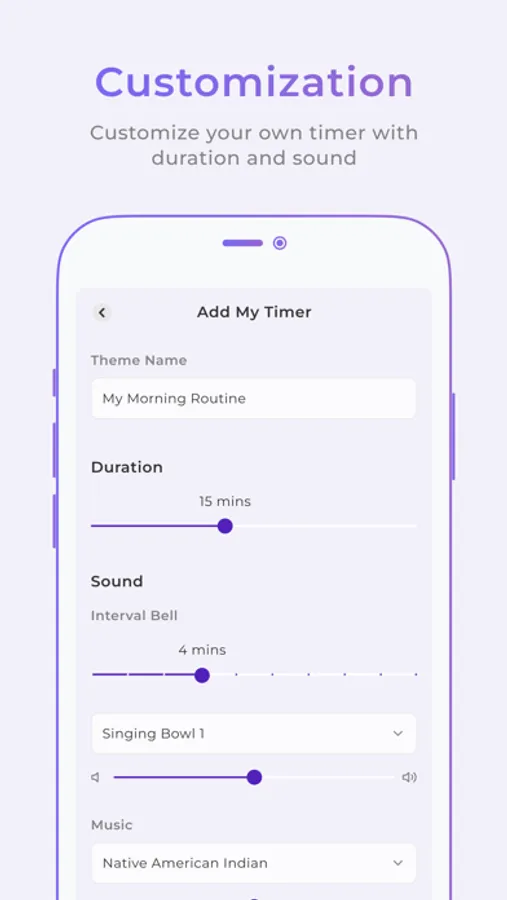 - Tailor your meditation experience by adjusting meditation time and sounds.