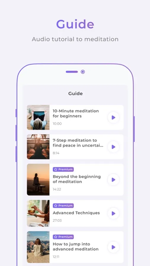 - Start your practice effortlessly, ensuring a well-rounded and fulfilling session. It's like having a meditation assistant right in your pocket, ensuring you stay on track and make the most of each session.