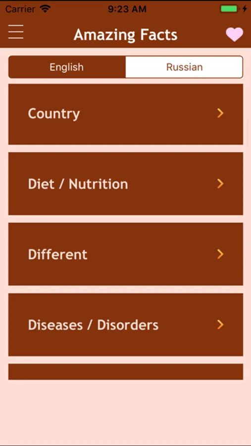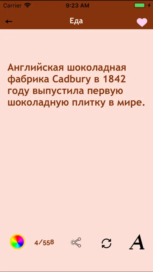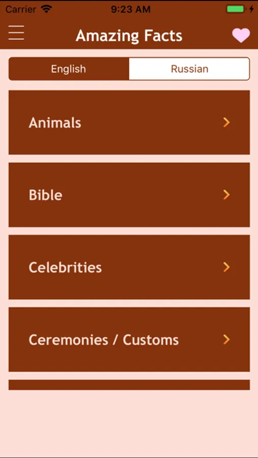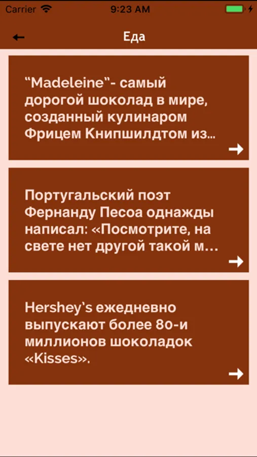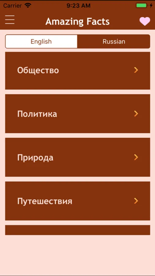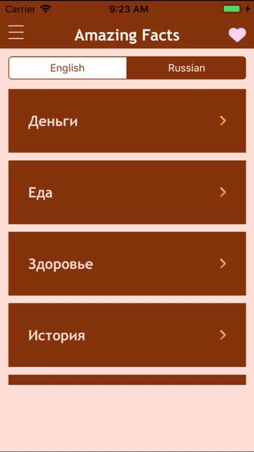 Amazing Facts app contains more that 18,000 interesting facts about people, events, nature, and other things that surround us, broken down by categories - "Cinema", "money", "Nature", "Politics", etc.