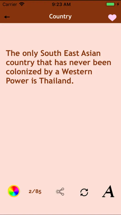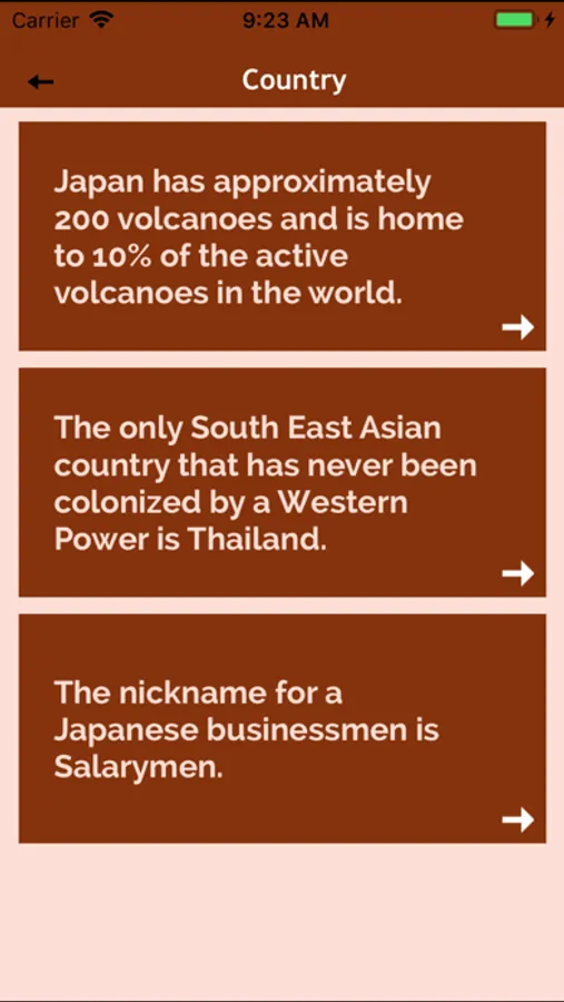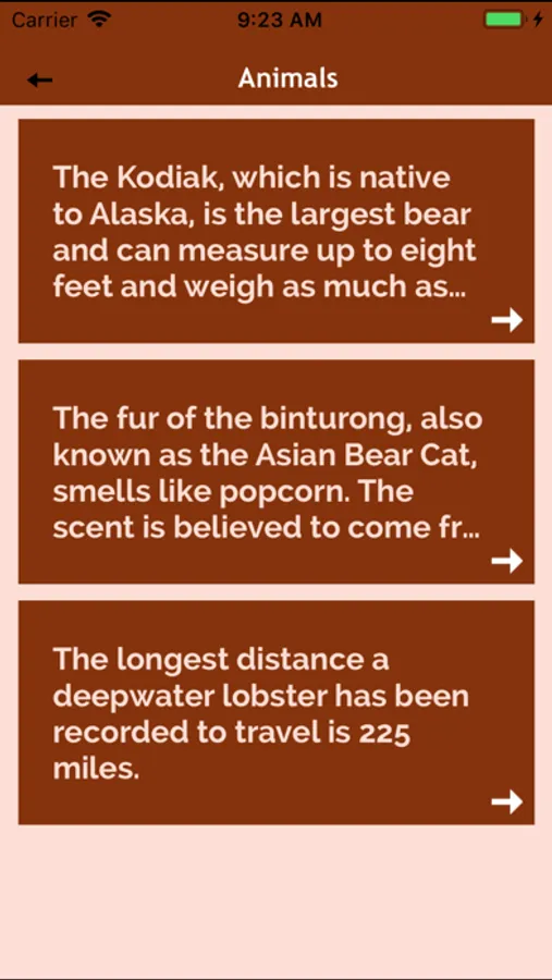 - Facts are divided into categories: money, sports, food, health, movies, politics, etc.