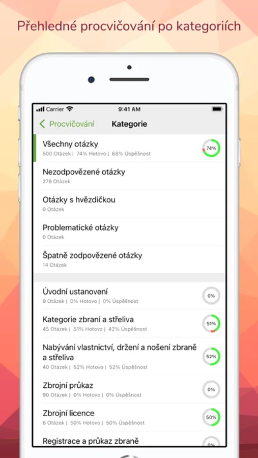 Aplikace obsahuje testy pro všechny běžné typy zbrojního průkazu: