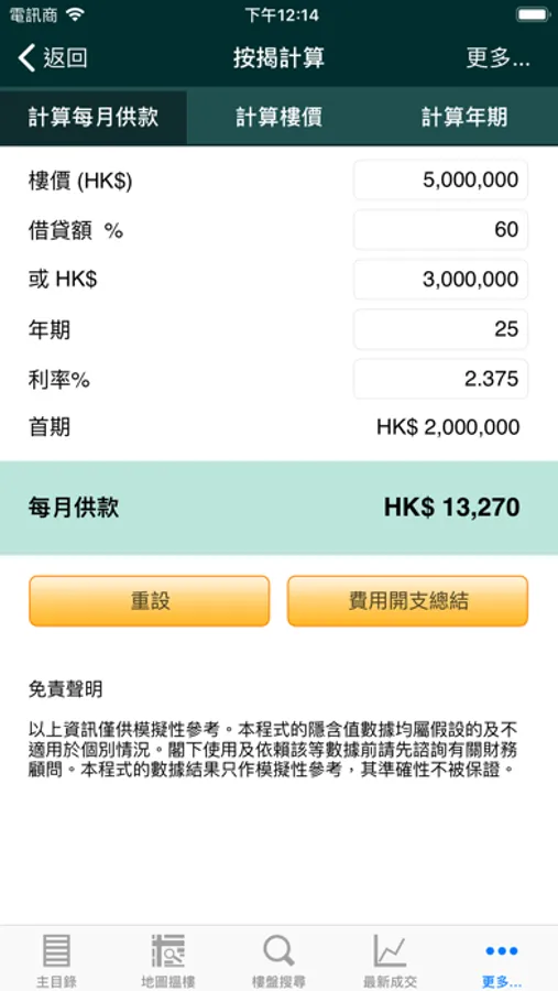 按揭計算 - 提供多元化功能讓用家計劃置業財務安排需每月供款所還的本和息均有詳盡顯示