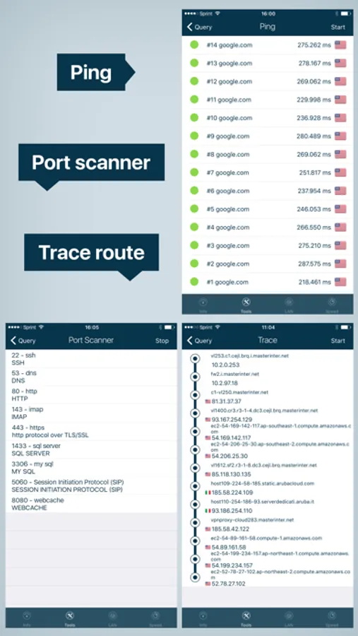 Scan the most common ports or specific port ranges quickly and effectively. Network Analyzer will detect closed, firewalled, and open ports.