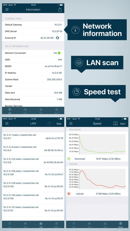 Discover a fast and reliable way to detect all network devices and gain insight into their IP address and vendor name. See NetBIOS, mDNS (bonjour) and DNS name where available and test the pingability of discovered devices easily.