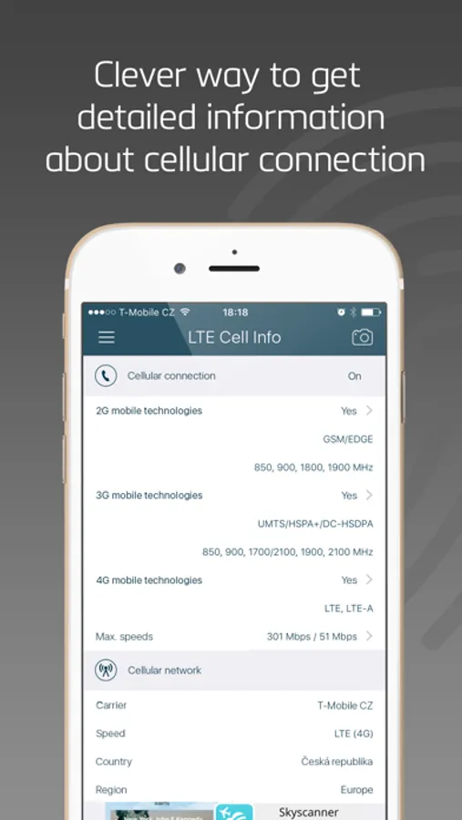 LTE Cell Info is a great multifunctional tool, which helps you to gather all the information you need to know about your cellular connection. It is a clever way how to get all the details about your current carrier, the connection mode or even detect max. physical cellular speeds in the supported mobile technologies.