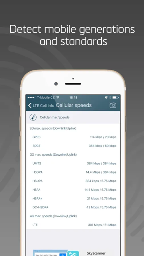 • Detect mobile generations and standards supported by your device (2G, 3G, 4G, GPRS, EDGE, UMTS, HSPA, LTE, VOLTE).