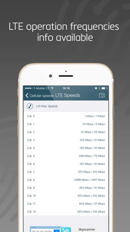 • Detect device supported GSM, UMTS and LTE operation frequencies and channels with detailed band information s.