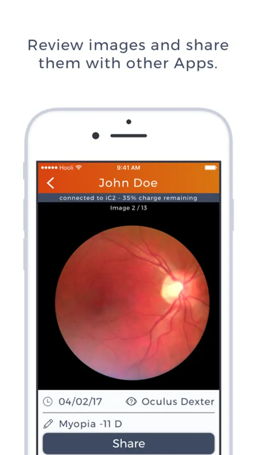 The HEINE iC2 App is an ophthalmologic application designed to be used with a HEINE iC2 funduscope. It enables you to easily capture and manage high quality fundus images.