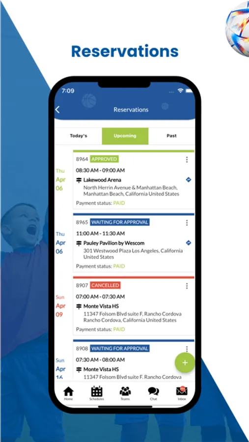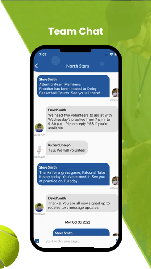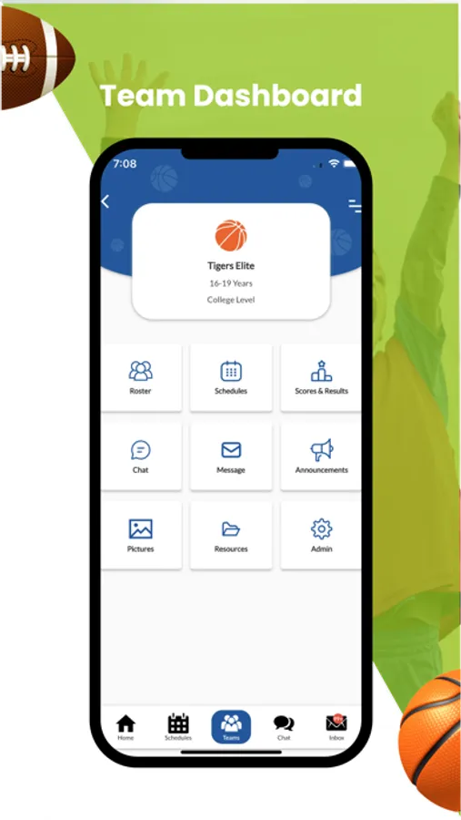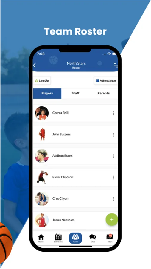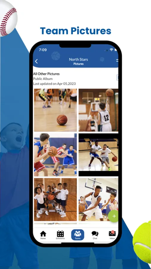 Team Schedule: Create and manage games, practices, and events with reminders and instant notifications.