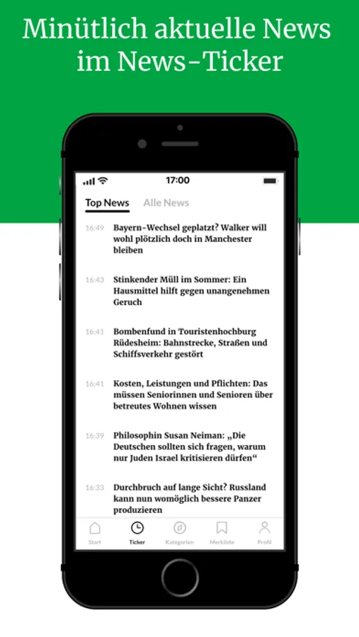 Alle Top-News und alle Nachrichten über die Ticker-Funktion verfolgen.