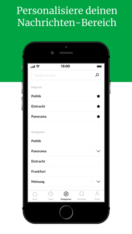 Wichtige Kategorien lassen sich einfach auswählen und abrufen.