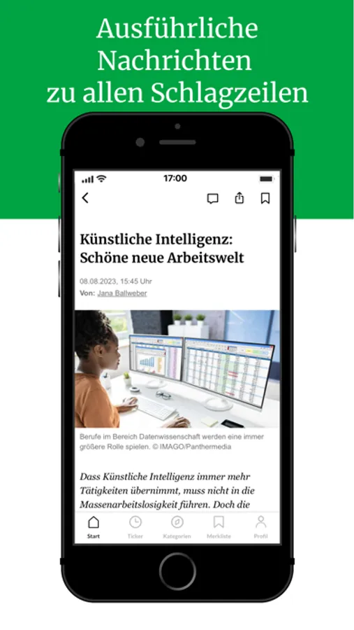 Interessante Meldungen lassen sich einfach teilen, über die Bookmark-Funktion speichern und über die Merkliste abrufen.