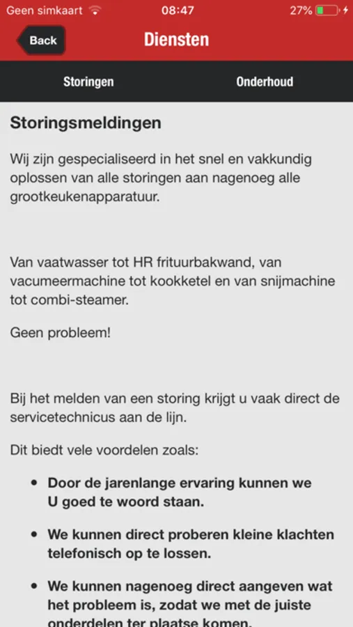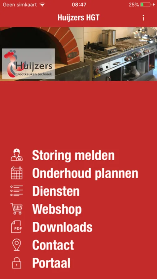 De applicatie voor klanten van Huijzers Grootkeuken Techniek.