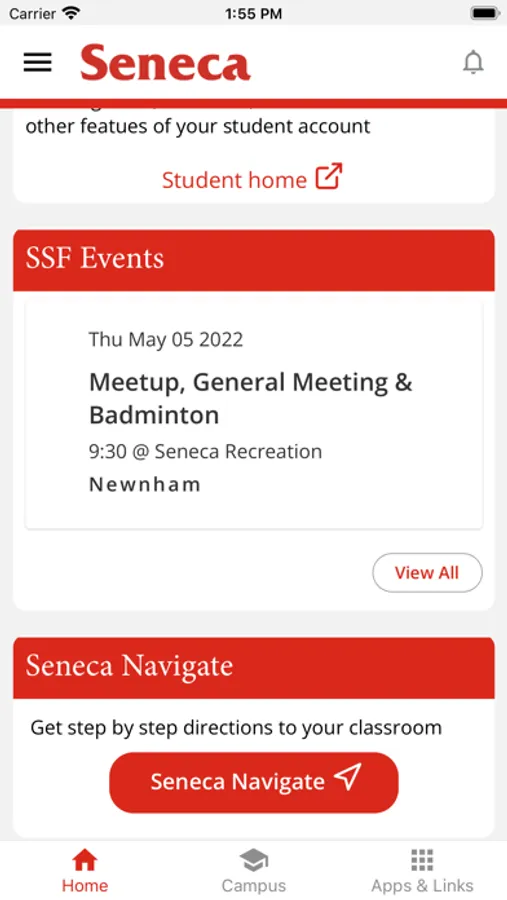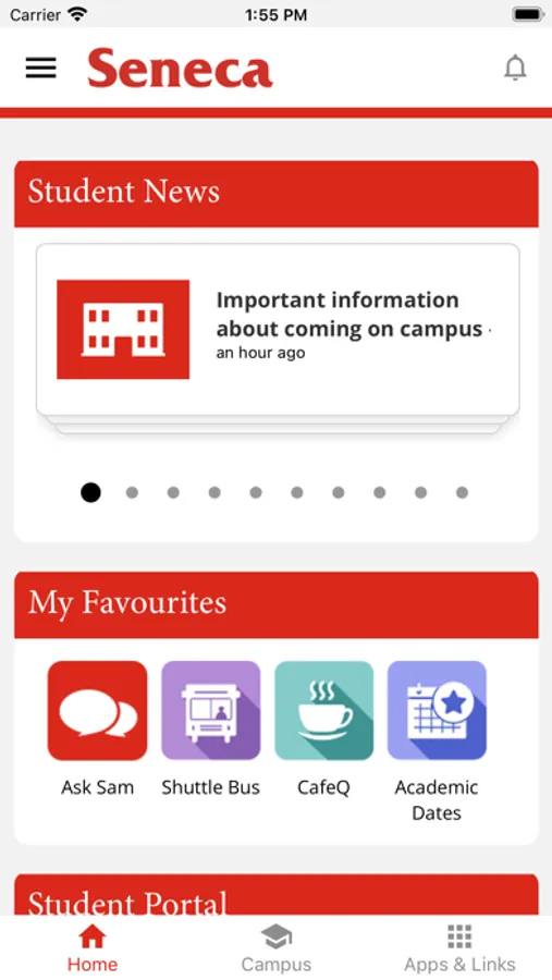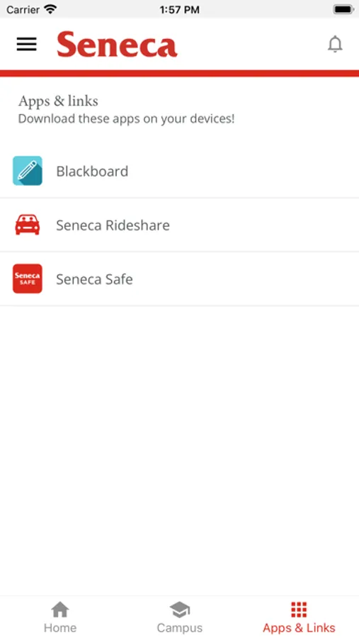Get info and updates on-the-go including: Seneca News, Shuttle Bus schedule, SSF events, CafeQ bus and more.