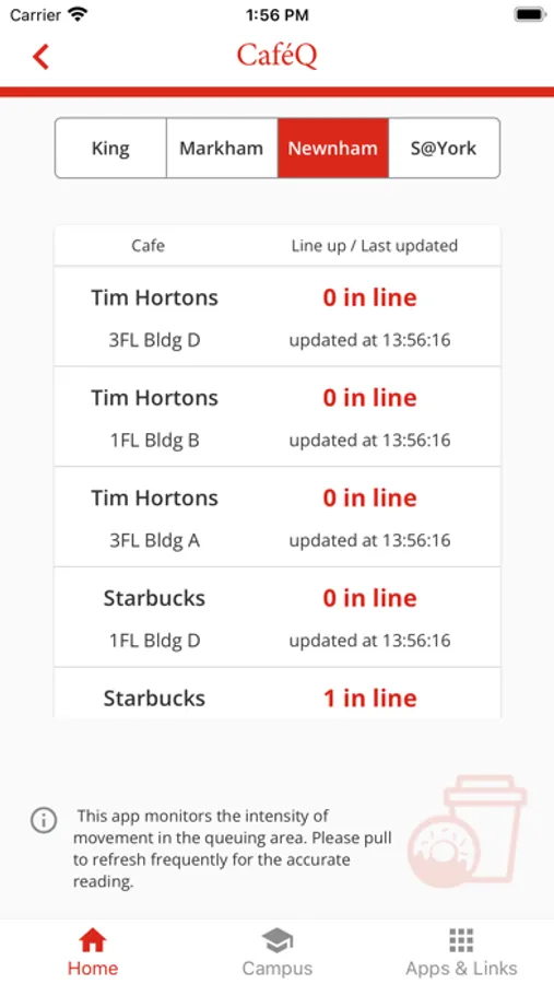 • CafeQ – Find out wait times and line ups at your campus Cafe outlet.