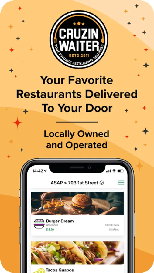 Hungry? Order from CruzinWaiter! We are a locally owned and operated restaurant delivery service, which means fast delivery, low prices, and the best customer service available. Don’t settle for less. With many local and national restaurants to choose from, you’ll be enjoying your favorite meals in no time. Browse menus, select your items, and sit back and relax while our delivery professionals handle the rest.