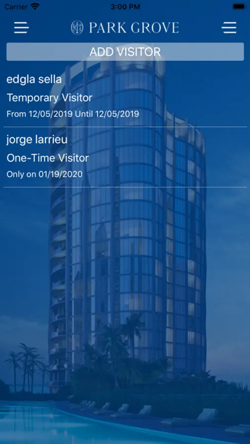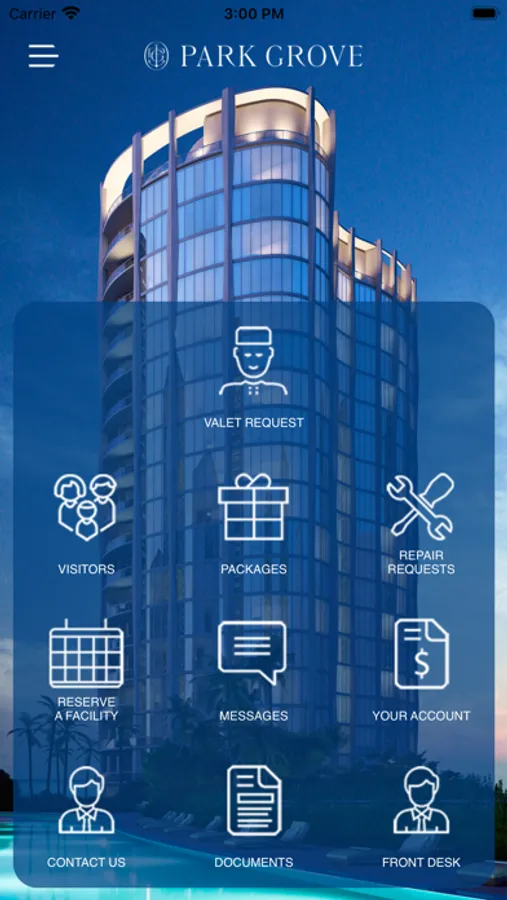 Park Grove is your private gate to your very own residence, wherever you might be. Access your Facilities Reservations, Concierge, Front Desk and Repair Requests, control Visitors Access, view and accept Deliveries, keep in touch thru our Internal Messaging System, all thru your iPhone, no matter where you are.