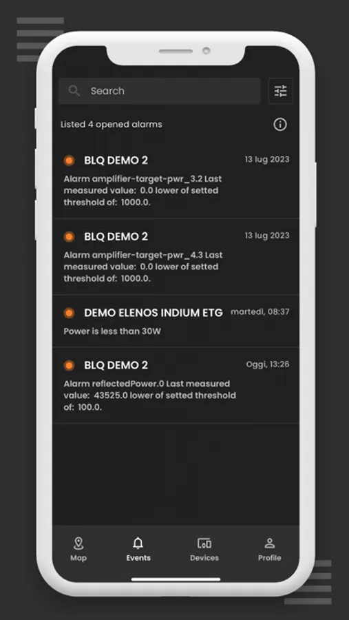- alarm notifications.