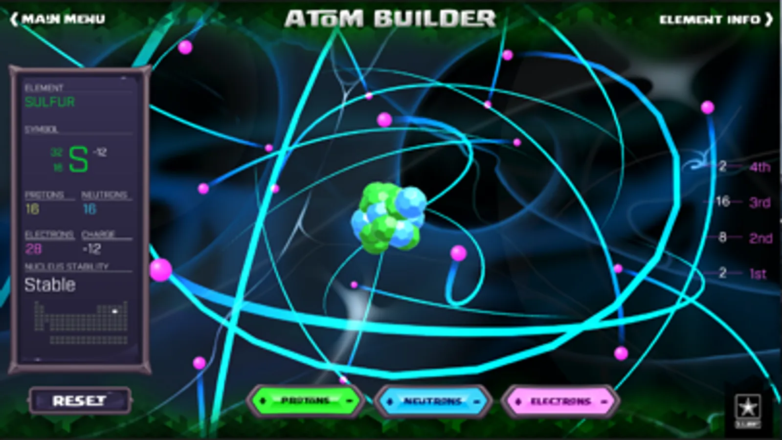 Atom Builder - A simple, powerful tool that let’s you construct and discover atoms. Add and subtract protons, neutrons, and electrons and see, in 3D, what you can create.