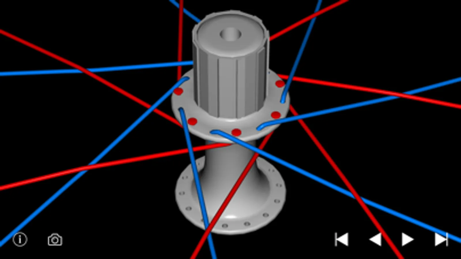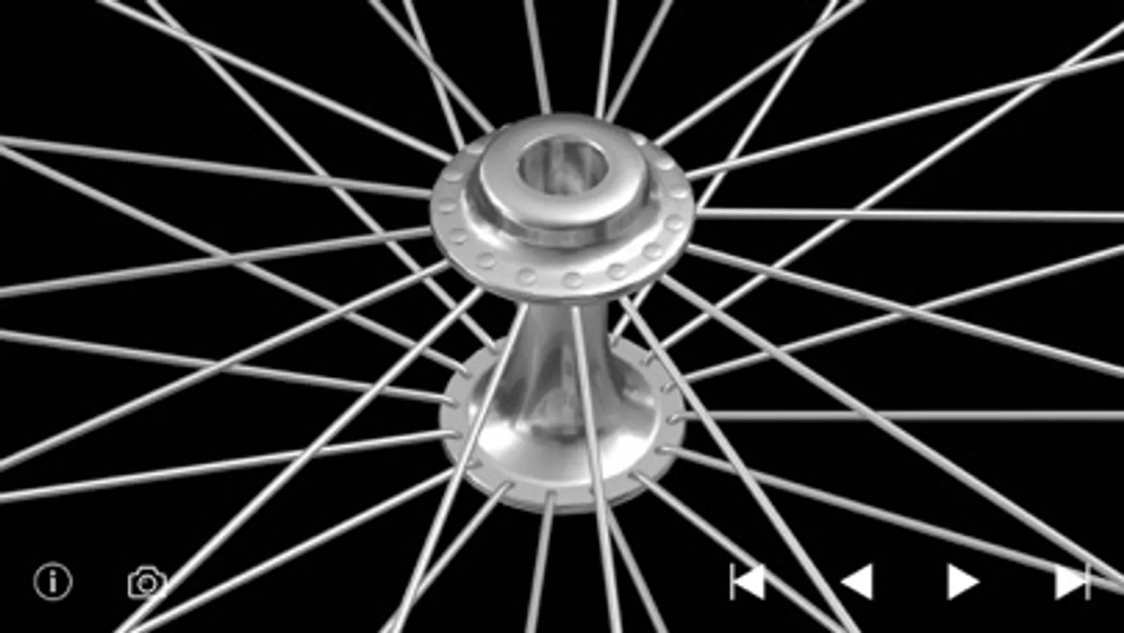 An App for bicycle wheel builders. Explore lacing patterns in 3D, from radial to four-cross. For several numbers of spokes, front and rear wheels, rim and disc brakes.