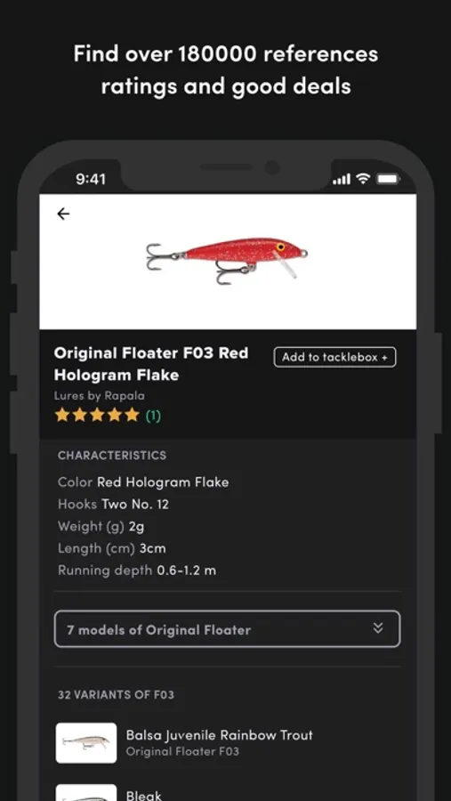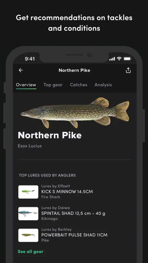 Save all your equipment in your digital tackle box, so you can select them quickly and associate them to your catches, to know which equipment (lure / rod / reel, etc...) works best in different situation