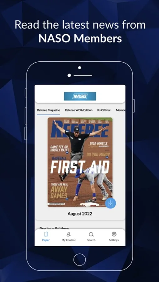 This app gives members of the National Association of Sports Officials access to digital versions of their member benefits such as Referee Magazine and It's Official Newsletter. Members may also download special reports and other member-only content as it becomes available.