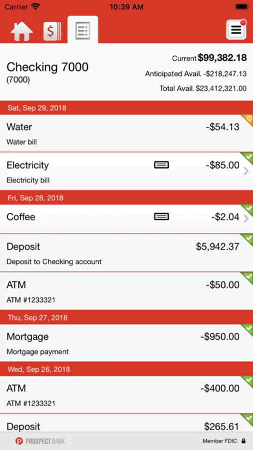 • View recent transactions, including check images