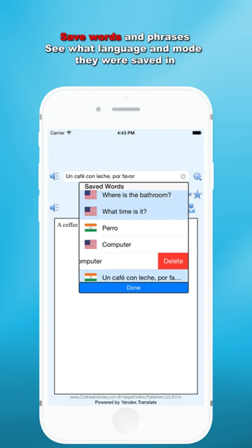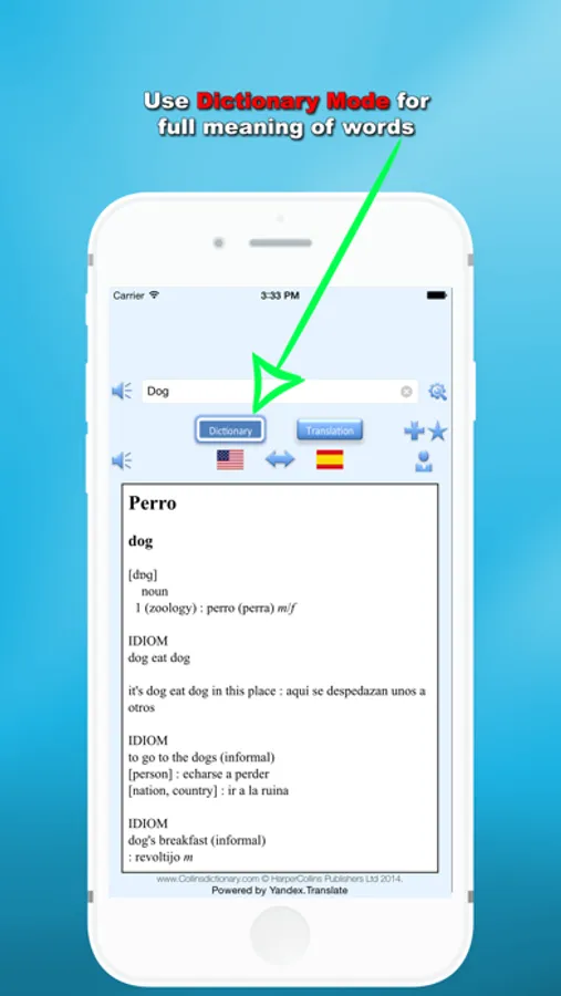 * Use English to Spanish, Spanish to English translation and dictionary in one app.