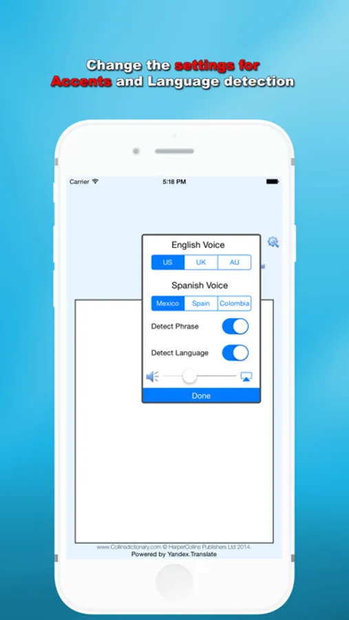 - Select the specific accent that you want for the speaker (for English you can select US, UK or Australian accent, for Spanish you can select Mexican, Spanish or Colombian accent).