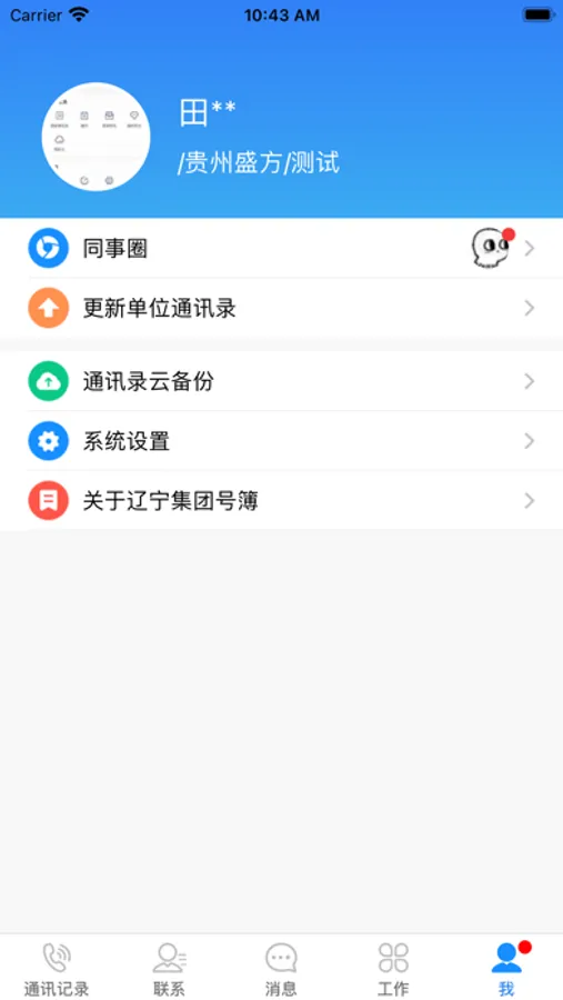 辽宁集团号簿是针对集团用户特点打造的一款集通讯、沟通、交流一体的手机应用门户。该产品以用户手机号码为核心,集合了云端通讯录、手机通讯录、集团微信以及可扩展的集团应用等一系列功能,全方位为集团客户日常办公服务,构建全能手机通讯助手。