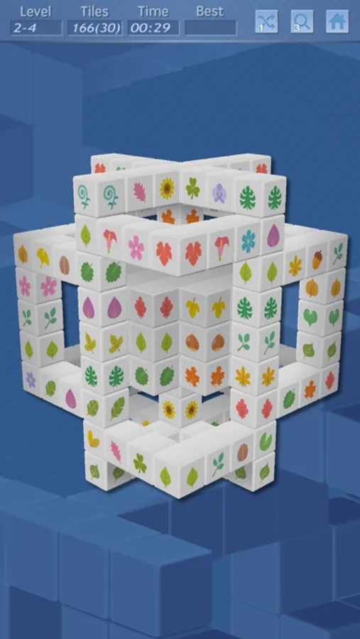 2. Players can rotate and zoom in and out the mahjong cubes. There are also hint and shuffle functions.