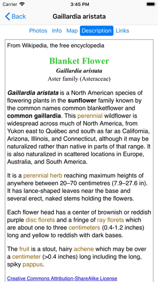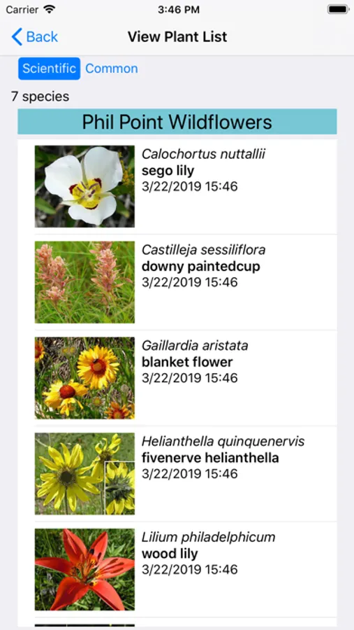 This App, which operates without an internet connection, helps find and identify plants. When you give the App information about a plant, such as its location, flower color and the time of year, the App will quickly show you which plants match your selections.