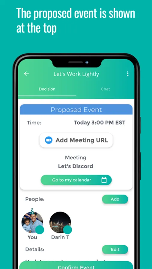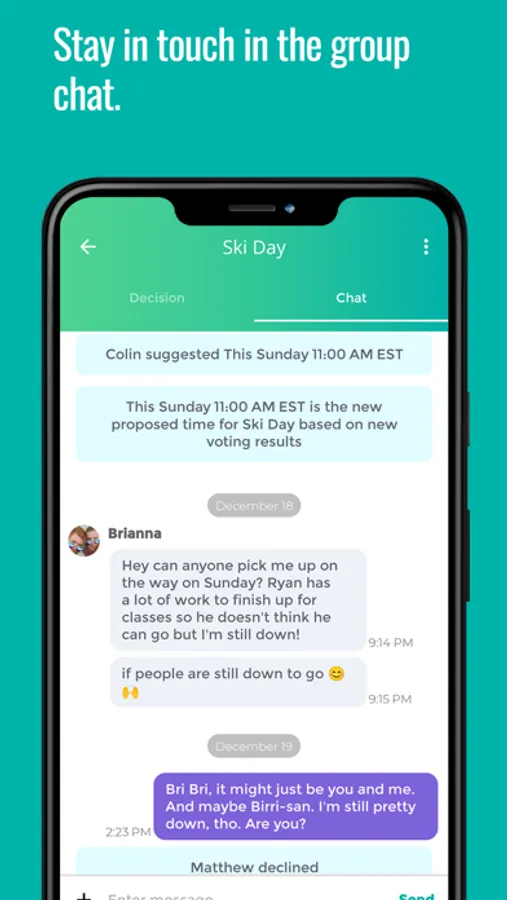 For everything else, there is a chat. Whose car are you taking? Running late? Have a picture to share? Use the chat.